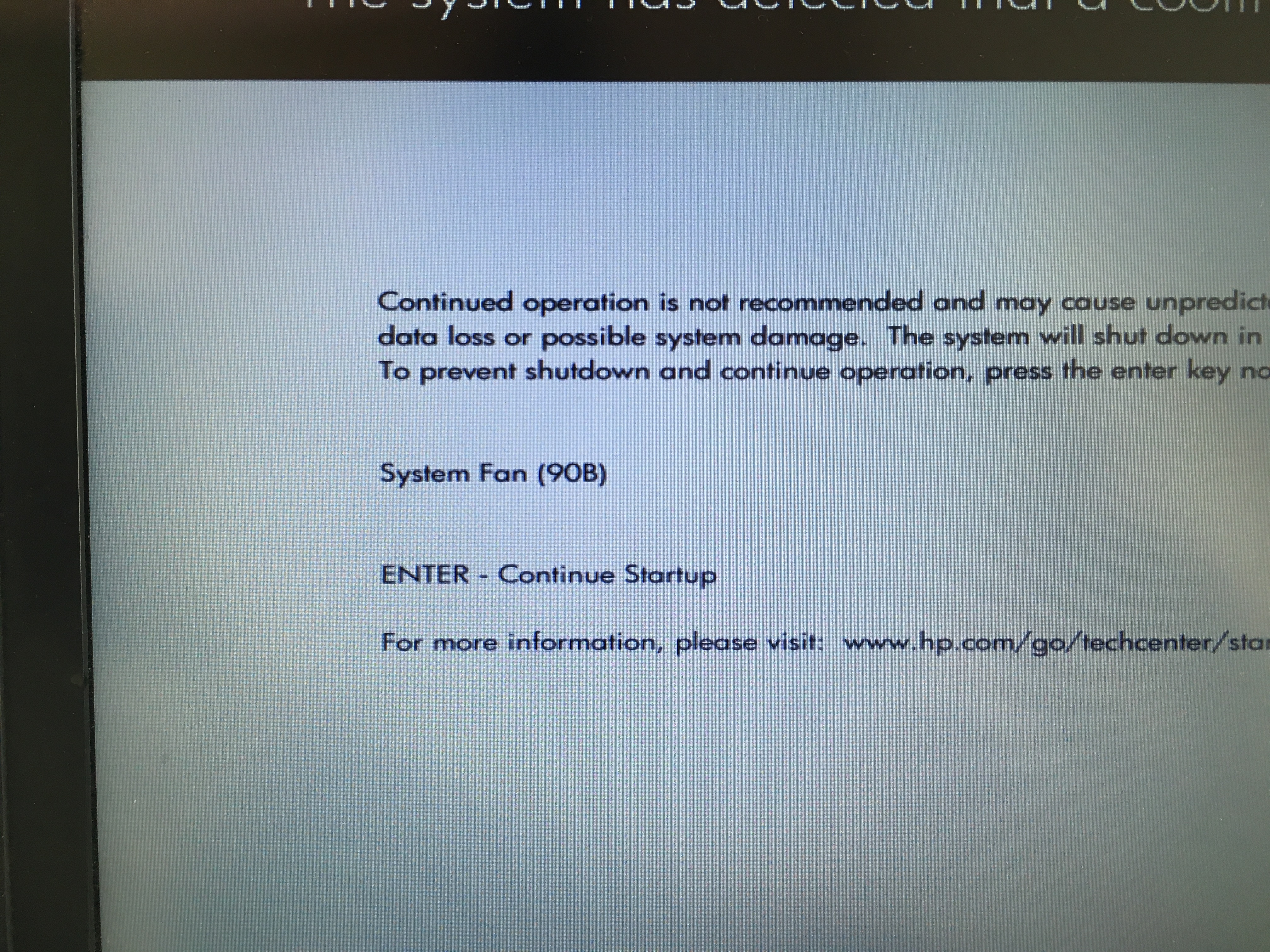 Sobre a mensagem de System Fan 90B ela realmente indica que há uma falha no FAN e que o mesmo deve ser substituido já que a BIOS está na versão mais atual. OMEN by HP 15-dc0000 Laptop PC series. Tambien te explico como. One thing youve to do is before shutting down. Purchasing items though our links will n. Sobre o problema de não desliga você pode buscar pela versão mais atual do driver de Chipset e também do driver MEI. If your HP Pavilion G7 is showing a 90B system fan error on start up there may be a fairly easy fix that is described in this quick tech video made for the n. System Fan 90b The system has detected that a cooling fan is not operating correctly. As far as I am informed HP has a security feature so only certain power supplies actually charge your device.
