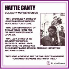 In 1990 more than thirty years after moving west with her family from rural Alabama Hattie Canty was elected president of the Las Vegas Hotel and Culinary Workers Union Local 226 a position that enabled her to significantly improve the standard of living for tens of thousands of workers in Las Ve. White February 27 1998. She became active in the Culinary Workers Union Local 226 and was elected to the locals executive board in 1984 the year they staged a 75-day walkout to improve health insurance for casino workers.